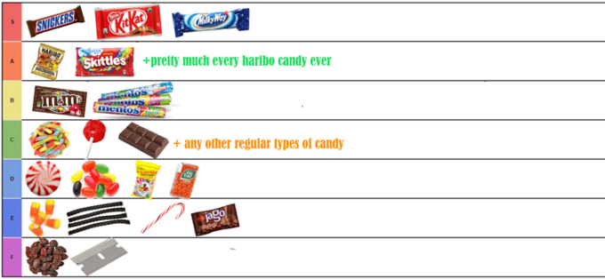 Halloween candy tier list duration.