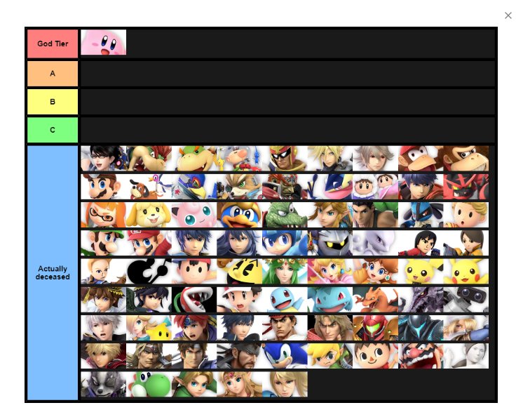 Final video of 2018 and i. Ranking all kirby hats in super smash bros. Thread starter ez quinn. Kirby hat tier list 8 13 05 top tier 1doc 2falco 3mario 4mewtwo high tier 5fox 6ice climbers 7samus 8yoshi 9shiek 10link 11ylink 12zelda mid tier 13bowser 14pikachu 15mr gw. Again this is based on a combination of look and power but is also meant to be lighthearted and funny so chill. Tier list for kirby hats.